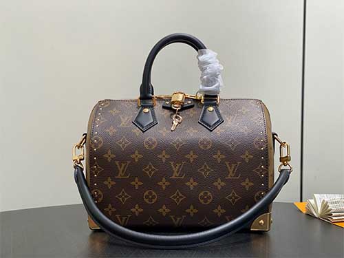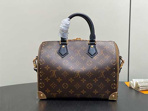 The Trunk Speedy 25 reinterprets Louis Vuitton’s iconic Speedy silhouette through the lens of the House’s historic trunk-making heritage. Crafted from Monogram canvas with refined leather trim and polished metal hardware, this runway edition fuses archival travel codes with modern elegance. Its structured yet compact form offers versatile styling, transitioning effortlessly from hand carry to shoulder or crossbody wear for refined everyday sophistication.