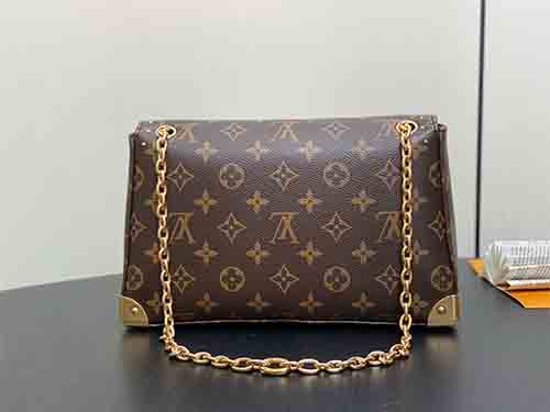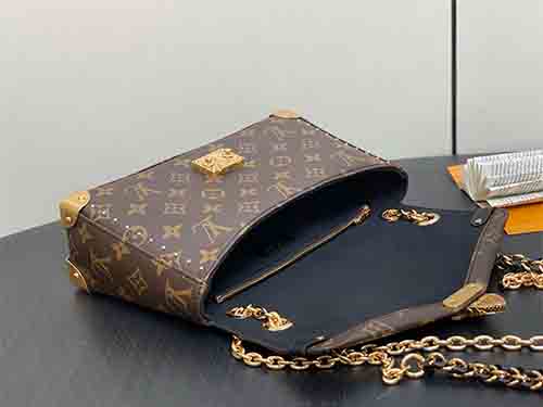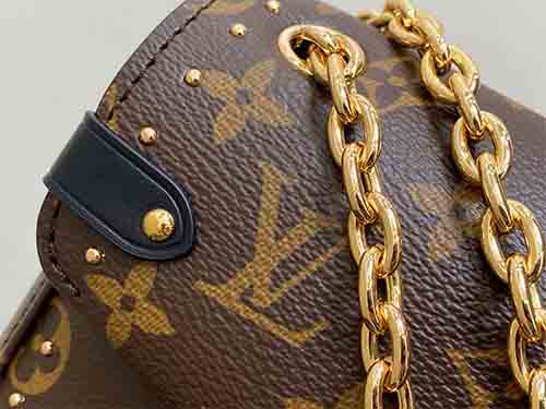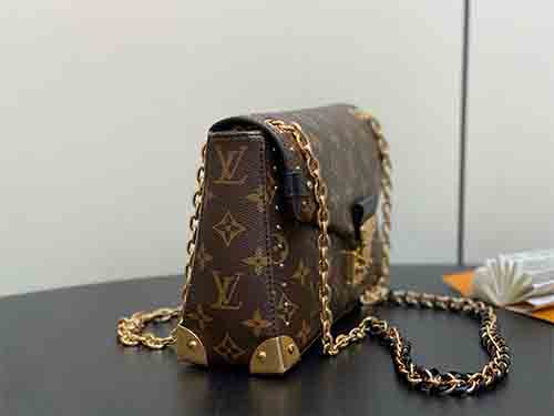The Trunkie Jh bag blends Louis Vuitton’s iconic Monogram canvas with trunk-inspired metal details. Featuring signature S-lock hardware, reinforced corners, and a sleek chain strap, it offers a refined yet modern crossbody silhouette ideal for everyday use.