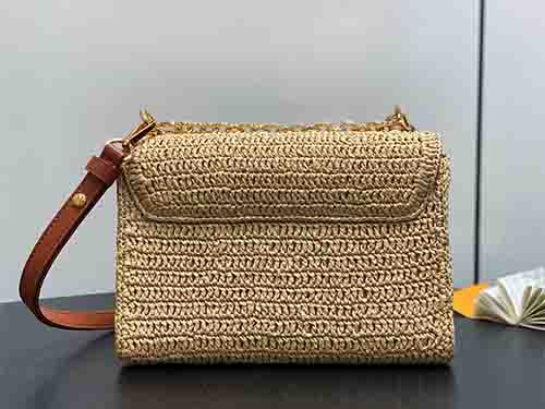 The Twist Slim Small bag embodies the effortless elegance of the French Riviera, blending seasonal craftsmanship with iconic Louis Vuitton design. Crafted from woven raffia, the bag is elevated by contrasting leather trim and the signature LV Twist lock, showcasing the House’s refined artistry. Thoughtful interior pockets ensure organized storage, while a detachable mirror adds a functional yet luxurious touch. Lightweight and versatile, this piece transitions seamlessly from daytime leisure to