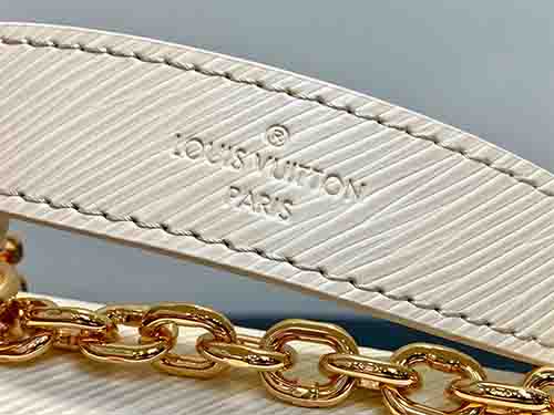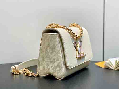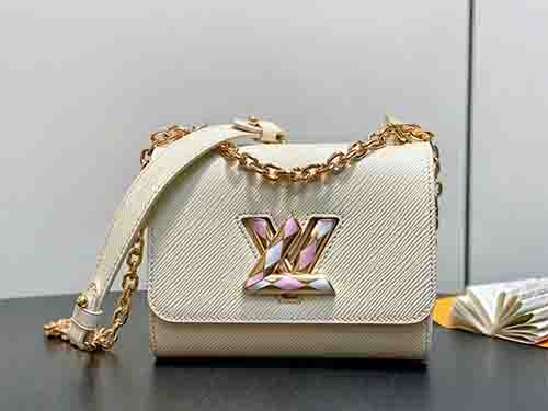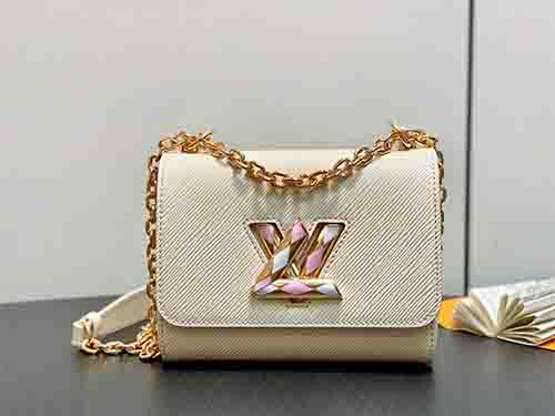 Crafted from iconic Epi grained leather, the Twist Small bag reinterprets the Maison’s signature LV Twist lock with elegant quilting and refined enamel accents. A gleaming sliding chain allows for both shoulder and crossbody wear, while the structured interior offers multiple pockets, a removable mirror, and a zippered compartment to organize daily essentials with ease. Compact yet sophisticated, this piece transitions seamlessly from day to evening.