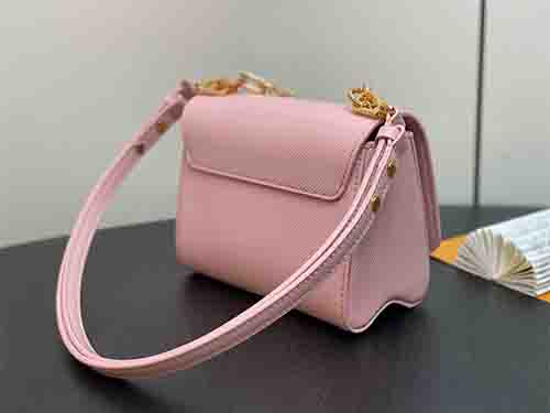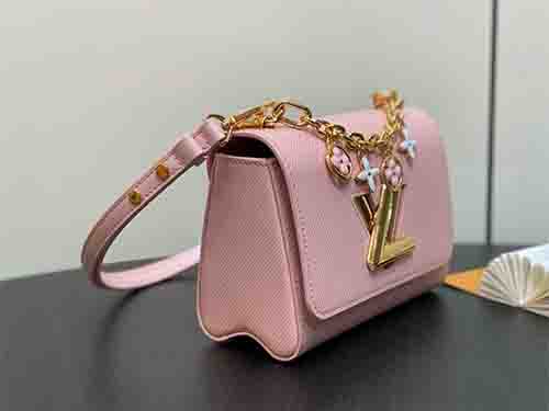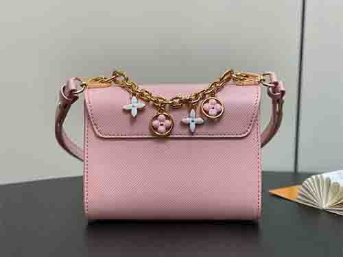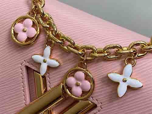 The Twist Small bag reinterprets a modern icon with refined femininity. Crafted from signature Epi grained leather and trimmed with smooth calfskin, this compact silhouette is elevated by a removable decorative chain adorned with enamel and metal Monogram flowers. Designed for versatility, the adjustable and detachable strap allows both shoulder and crossbody wear, making it ideal for day-to-evening transitions.