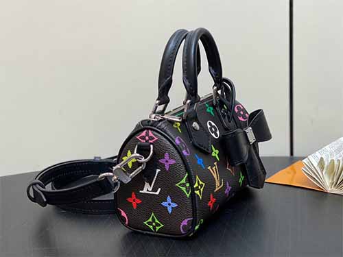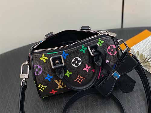 The Nano Speedy handbag from the Louis Vuitton x Takashi Murakami collaboration reimagines the iconic Speedy silhouette in a compact, playful form. Crafted from classic Monogram canvas with refined leather trim, this miniature piece features Murakami’s vibrant multicolor Monogram print, celebrated worldwide for its bold artistic energy. Loved by celebrities and fashion icons, the Nano Speedy blends collectible appeal with everyday versatility,