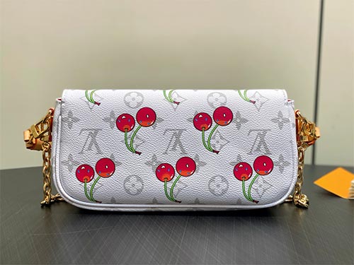 The Wallet On Chain Ivy Cherry Bag reimagines early-2000s individuality through the playful lens of Louis Vuitton x Takashi Murakami. Crafted from white Monogram canvas and adorned with vibrant cherry motifs, this compact chain bag channels Murakami’s iconic kawaii universe with refined Parisian elegance. Finished with a leather strap and gold-tone chain, it delivers effortless day-to-night versatility.