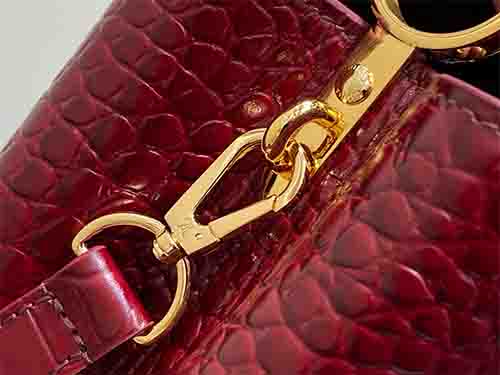 • Taurillon leather with croc-embossed texture