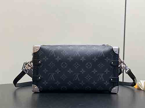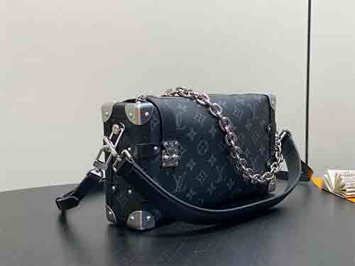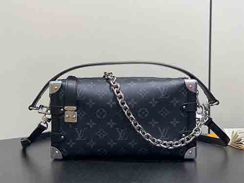 The Side Trunk East West Medium Bag reinterprets Louis Vuitton’s iconic trunk heritage in a refined horizontal silhouette. Crafted from Monogram Eclipse canvas, the soft structure offers generous interior space while maintaining a sleek profile. Signature elements such as the S-lock closure, reinforced trunk corners, and glossy chain elevate the design. Designed for versatility, it can be carried by hand or worn crossbody with the detachable shoulder strap—an ideal companion for modern