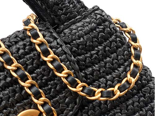 Material: Raffia tejida con detalles en cuero charol