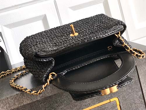 La bolsa Chanel Kelly Mini de la colección Chanel 26C en color negro presenta una reinterpretación moderna de uno de los diseños clásicos de la casa. Inspirada en el modelo Kelly de 1997, esta versión renovada combina elegancia vintage con funcionalidad contemporánea. Fabricada con una textura tejida refinada y detalles en cuero charol, ofrece un aspecto distintivo y sofisticado. El diseño estructurado con asa superior y cadena permite llevarla en la mano, al hombro o cruzada. A pesar de su