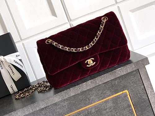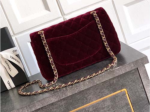 La bolsa Chanel Classic Flap de terciopelo en color dark coffee brown combina la herencia clásica de Chanel con un elegante estilo vintage.