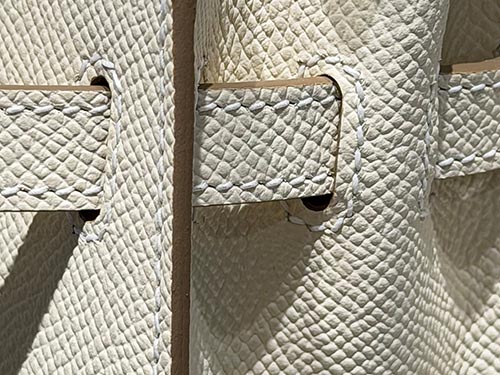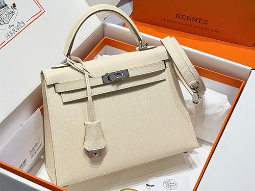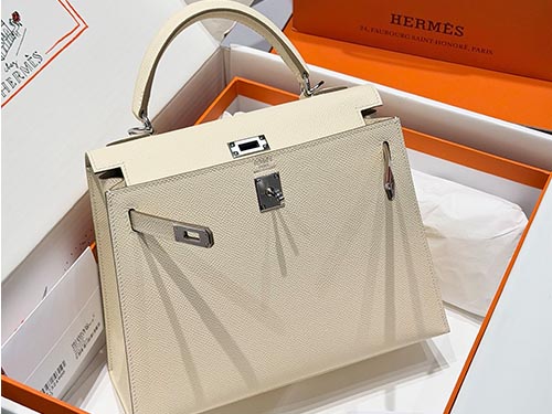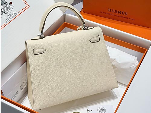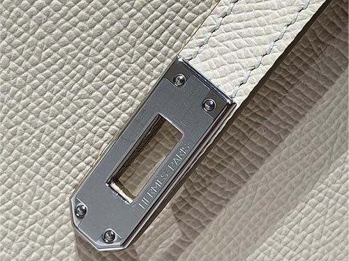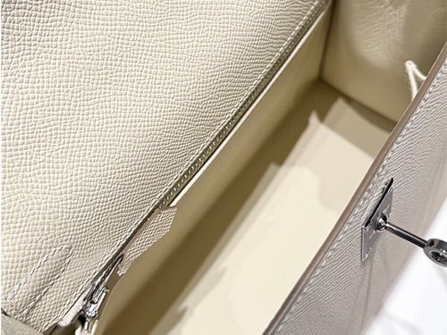 En cuero Epsom, el color se percibe más estructurado y limpio, resaltando la forma del Kelly. Su peso visual ligero lo hace ideal para estilos minimalistas, colecciones resort y uso cotidiano en retail de lujo.